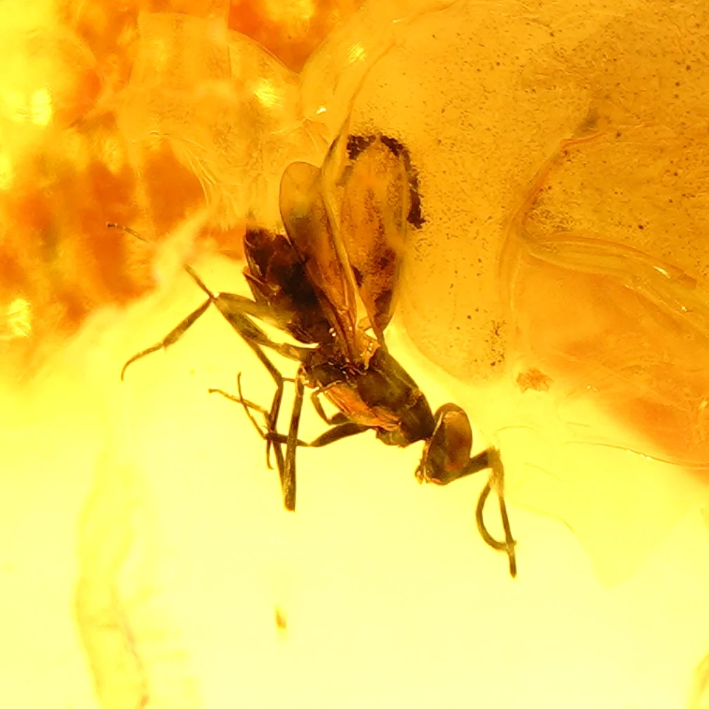 Natūralaus Baltijos gintaras su skraidančia skruzdėle