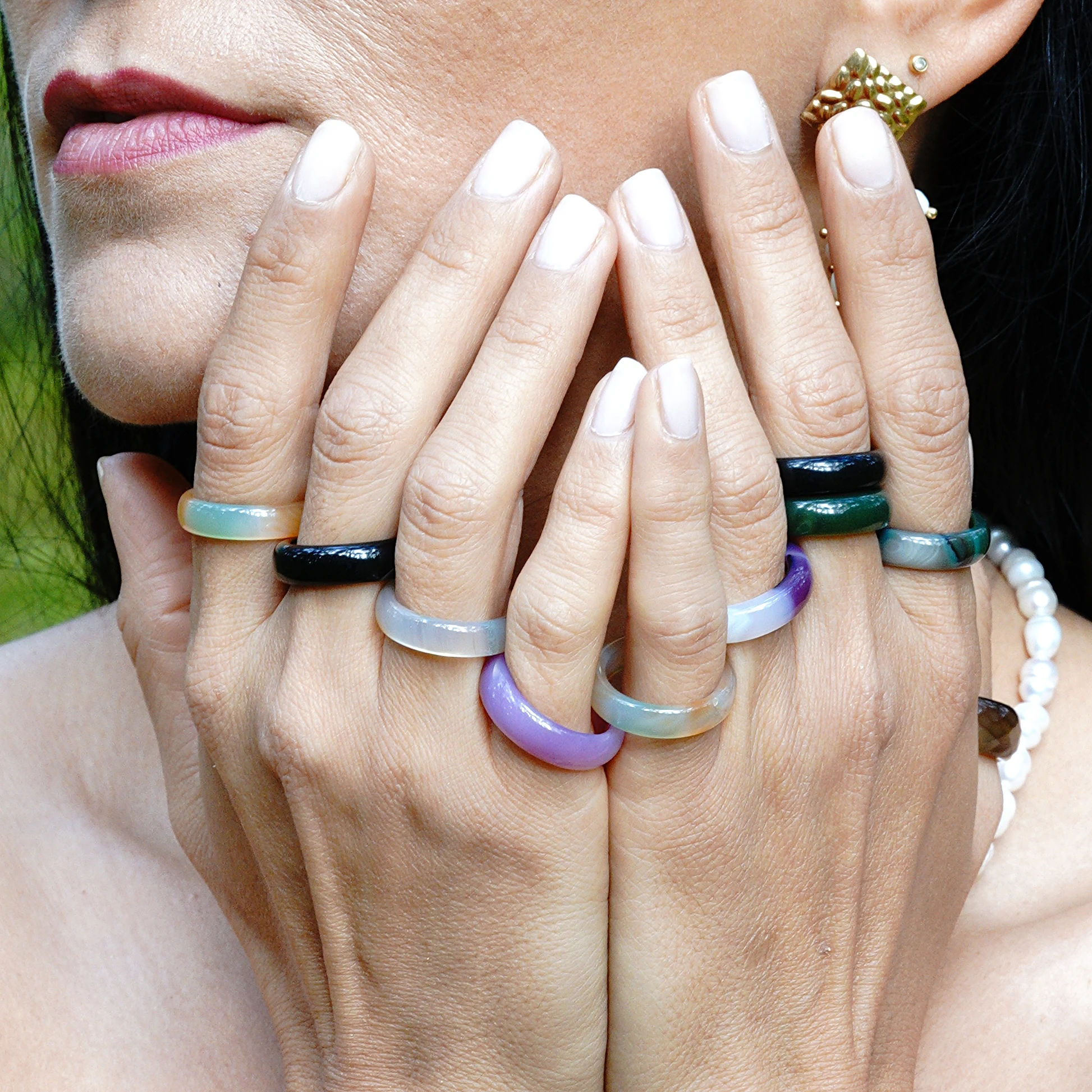 Natūralaus žalio agato žiedas